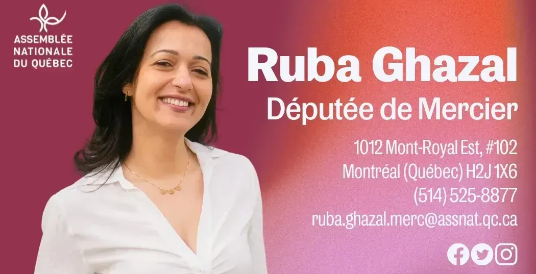 [Un message de Ruba Ghazal, députée de Mercier à l’Assemblée nationale du Québec]