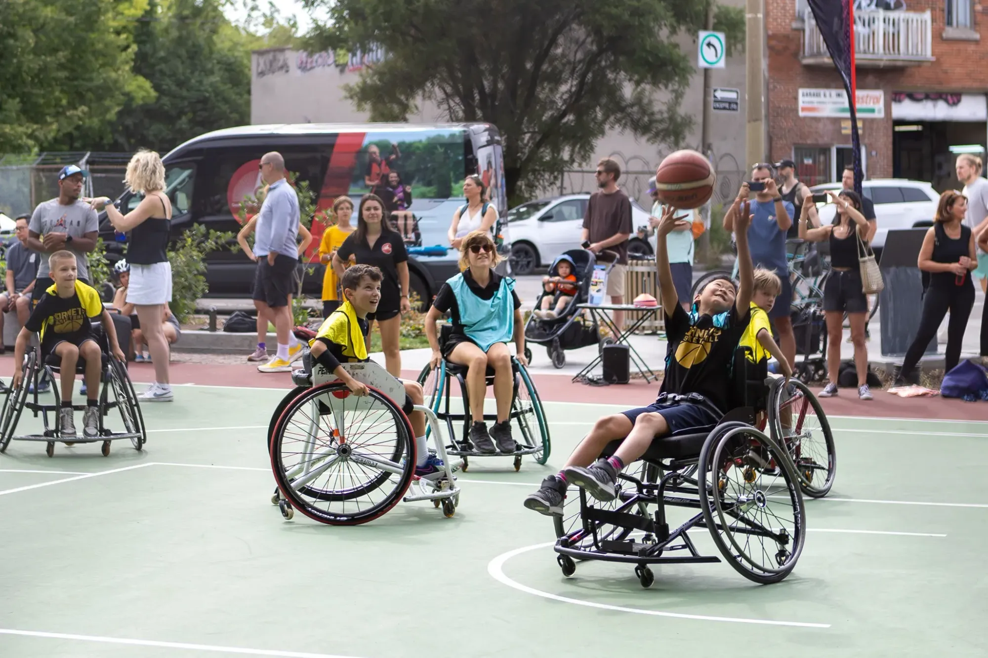 Lors de son inauguration, le 23 août, une activité d'initiation au basketball en fauteuil roulant a été offerte ainsi que des ateliers destinés aux jeunes. Des partenaires du Centre d’intégration à la vie active et de Jeunesse au Soleil ont aussi contribué à l’événement, en plus de membres de l’équipe de l’Alliance de Montréal, qui évolue au sein de la Ligue élite canadienne de basketball. – photo : Toma Iczkovits