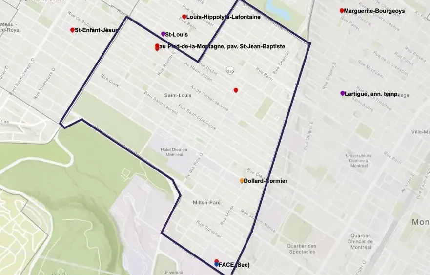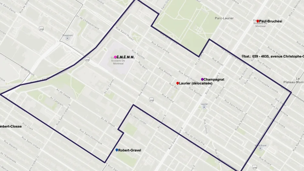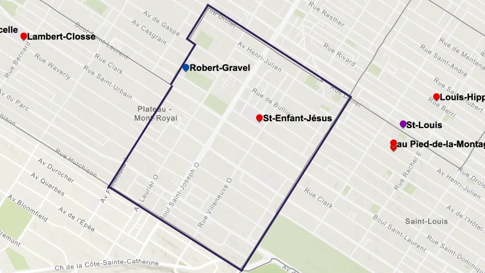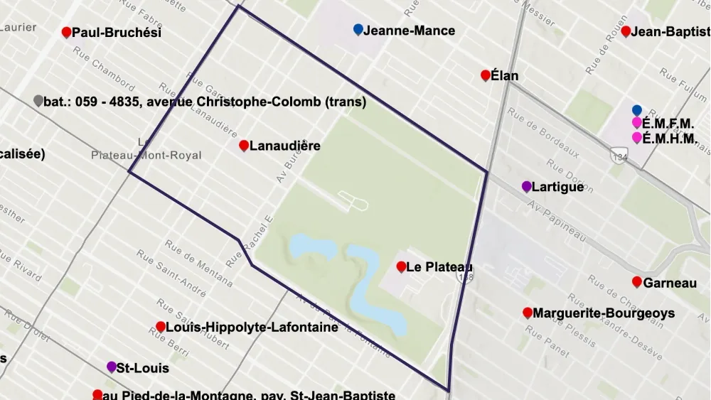 Certains ménages de l’ouest du Plateau-Mont-Royal peuvent accéder aux écoles Lajoie et Saint-Germain-d’Outremont, qui se trouvent sur le territoire du Centre de services scolaire Marguerite-Bourgeoys (CSSMB), dans Outremont.