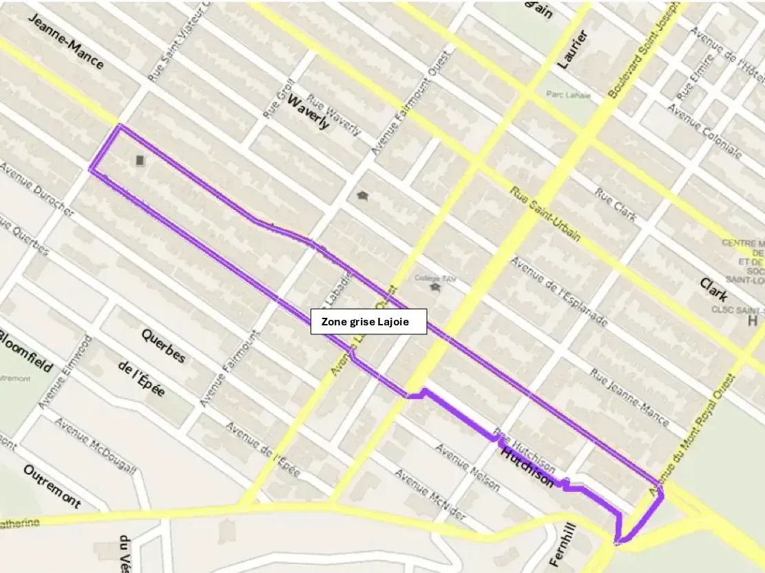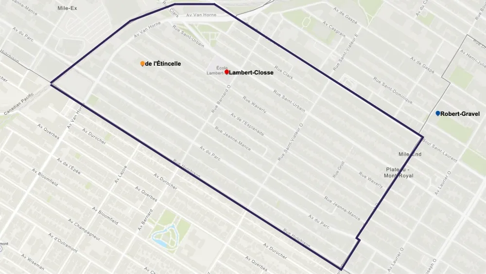 Du côté de l’école Lajoie, les adresses admissibles sont situées entre les rues Saint-Viateur et Hutchison, et les avenues du Mont-Royal et du Parc. Toutefois, seules les adresses paires sont admises pour ce qui est de Saint-Viateur et du Parc.