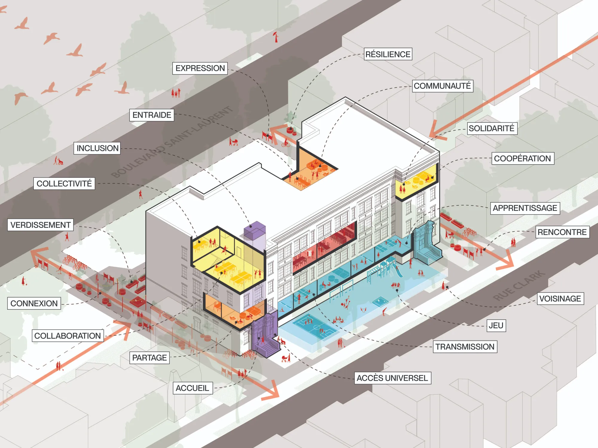 Un grand «pôle communautaire» à venir dans le Mile End. Tout indique que l'ancienne école Luke Callaghan deviendra d'ici 2028 un pôle communautaire de 40 000 pieds carrés abritant le CPE Alexis le Trotteur, des organismes et des entreprises d'économie sociale.