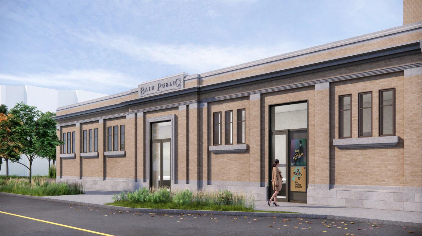 Dans les plans conçus par la firme d’architectes Patriarche, plusieurs éléments du bâtiment seront préservés, notamment la fenêtre en œil-de-bœuf faisant face à la rue Maguire, la céramique et la cavité du bassin où se trouvait anciennement la piscine.
