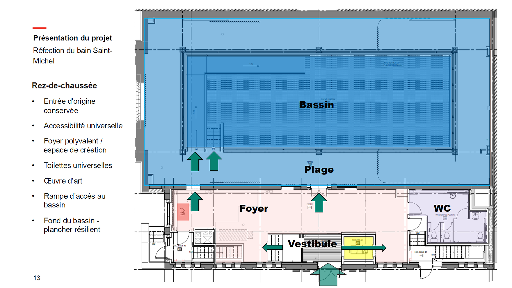 Des rendus numériques et des plans du Bain Saint-Michel, une fois les travaux de réfection terminés.