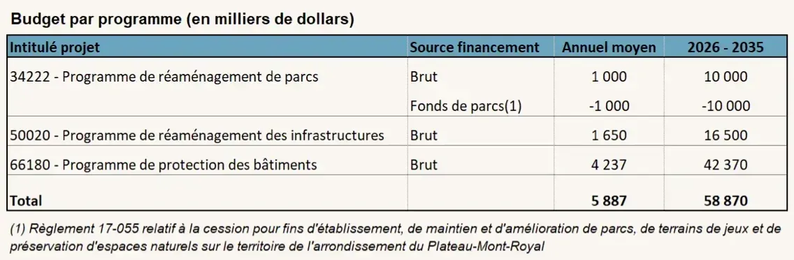 En moyenne, Le Plateau prévoit investir 5,9 millions $ par an sur ses parcs et infrastructures au cours des dix prochaines années. C’est du moins ce qui a été révélé par les élus de l'arrondissement le 1er décembre, lors de la présentation du programme décennal d’immobilisations 2026-2035.
