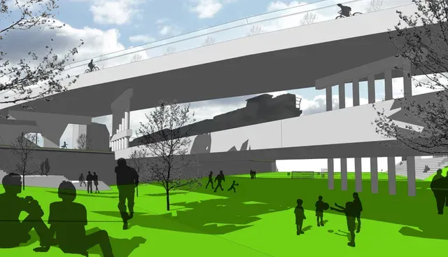 «Il y a un beau potentiel sous et sur le viaduc», explique M. Pratte, architecte principal sénior chez In Situ. «Plutôt que de dire qu'on le démolit, au contraire, l'idée, je pense, c'est de l'exploiter», ajoute-t-il en expliquant qu’il est plutôt rare de trouver un «toit urbain» de cette taille.