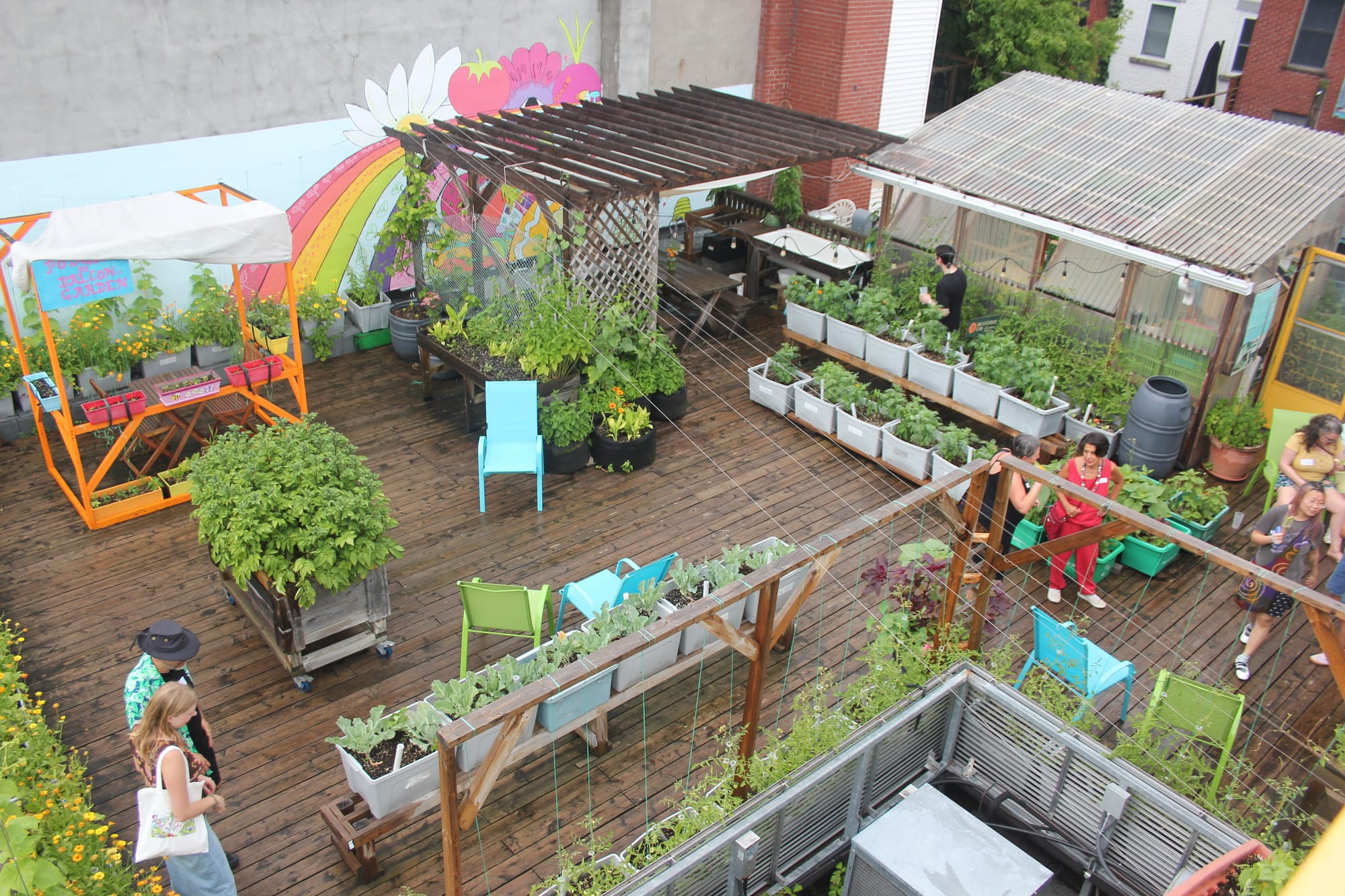 Les éclaircies ont tout de même permis aux fêtards désirant prendre un peu d’air d’explorer les jardins installés sur les toits de Santropol Roulant pendant que la Fanfare d’occasion s’offrait en spectacle à l’intérieur. En plus d’une chasse au trésor et de tours de magie, les enfants avaient accès à des jeux et à un kiosque de maquillage. – photos : Devin Ashton-Beaucage